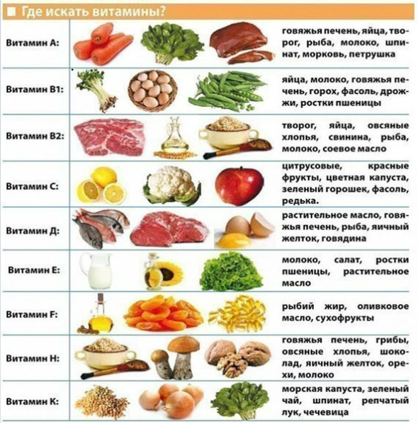 Витамин D - в печени, рыбе, икре, яйцах, укрепляет кости и зубы.